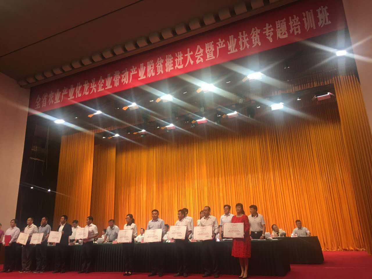 2017年9月25日,全省農業產業化龍頭企業帶動產業脫貧推進大會暨產業扶貧專題培訓班在成都金牛賓館召開。省農業產業化龍頭企業帶動脫貧攻堅聯席會議成員單位負責人、21市州和160個有脫貧任務的縣(市、區)黨政分管領導,以及相關部門單位負責人齊聚一堂,總結交流龍頭企業帶動產業脫貧經驗做法,學習產業扶貧政策知識等。